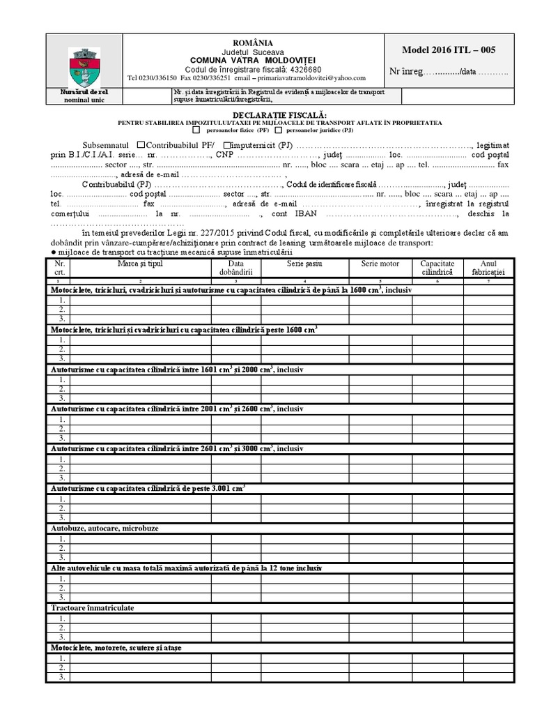 Itl 005 Declaraţie Fiscală Pentru Stabilirea Impozitului Taxei Pe Mijloacele De Transport Aflate In Proprietatea Persoanelor Fizice Sau Persoane Juridice 1 Pdf Google Drive