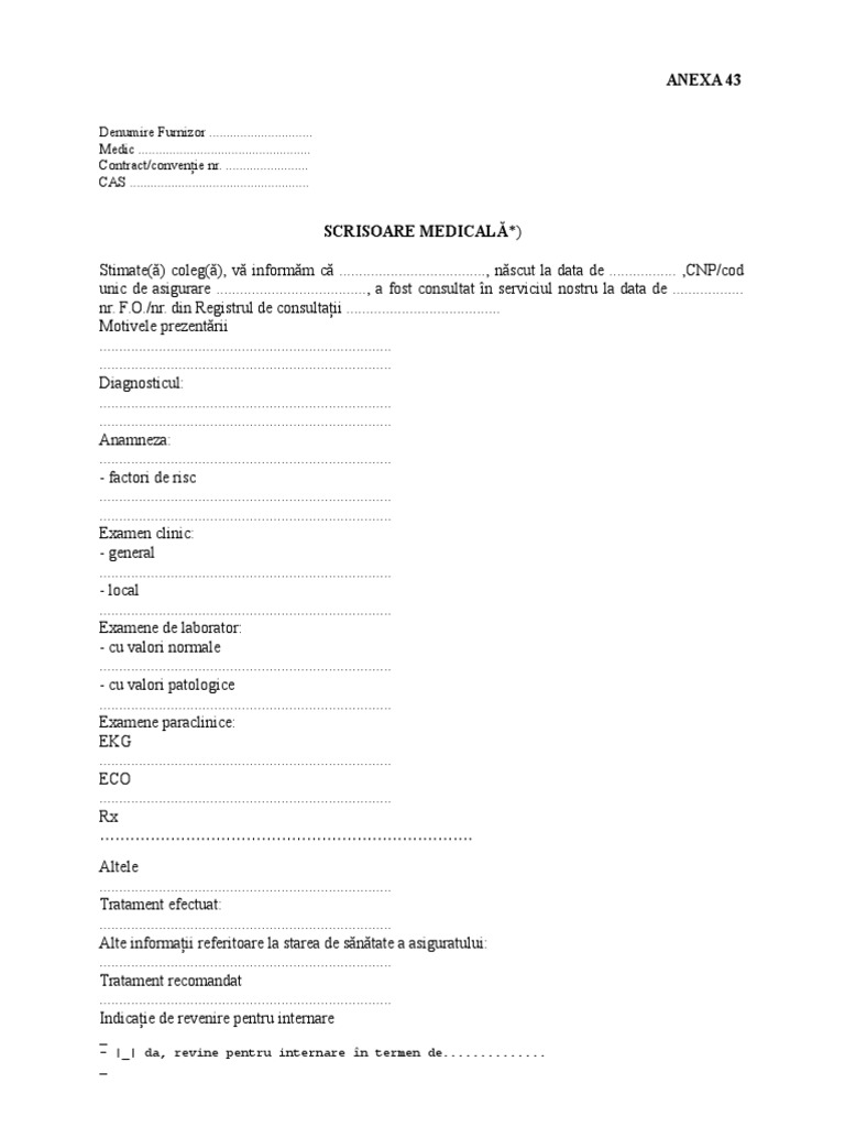 Scrisoare Medicala Anexa 43