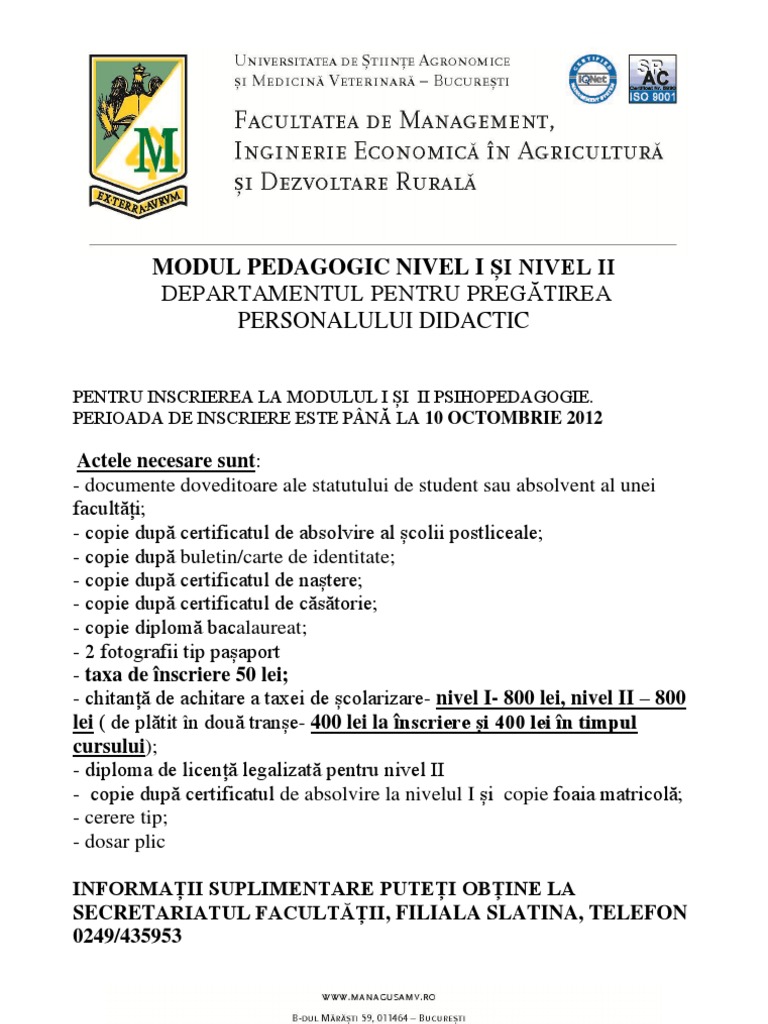 Modul Pedagogic Fac De Management Filiala Slatina