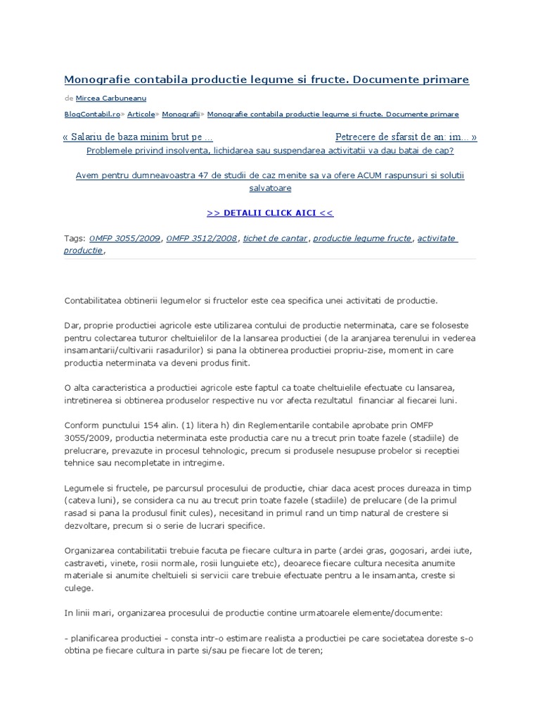 Monografie Contabila Productie Legume Si Fructe