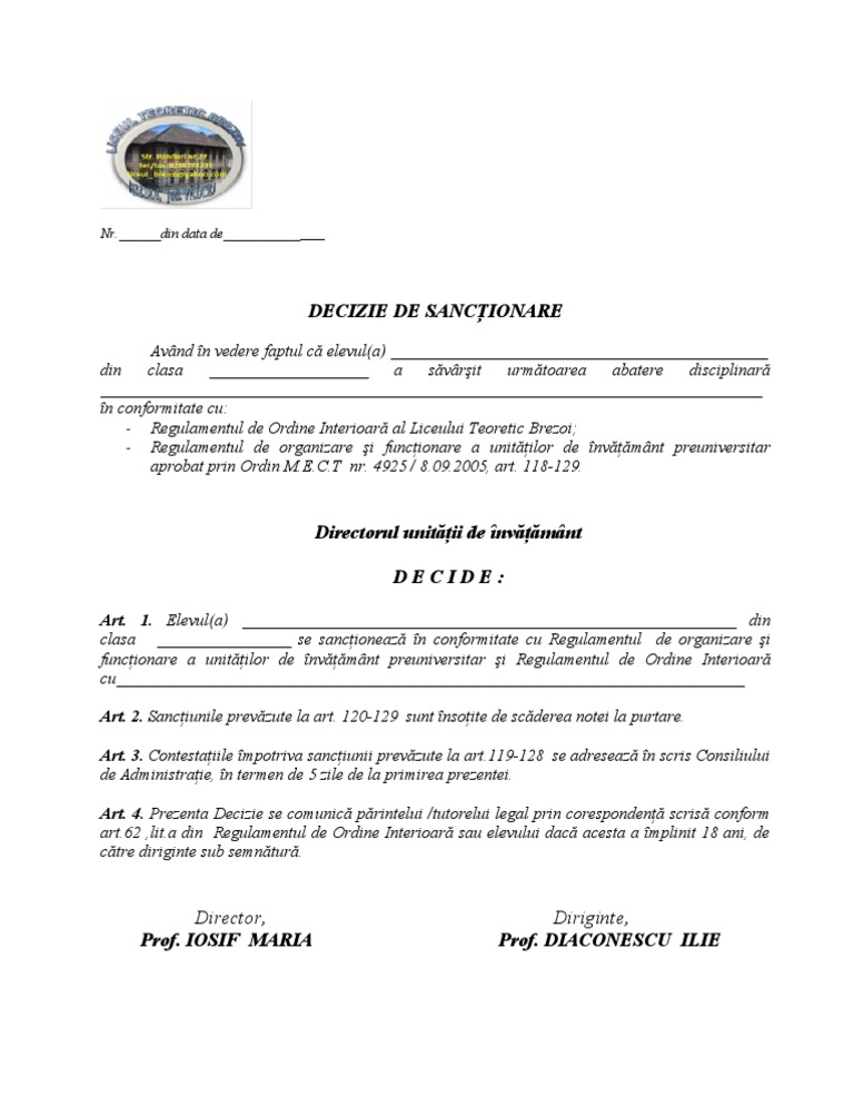Detalieri Privind Aplicarea Sancţiunilor Si Scăderea Notei La Purtare