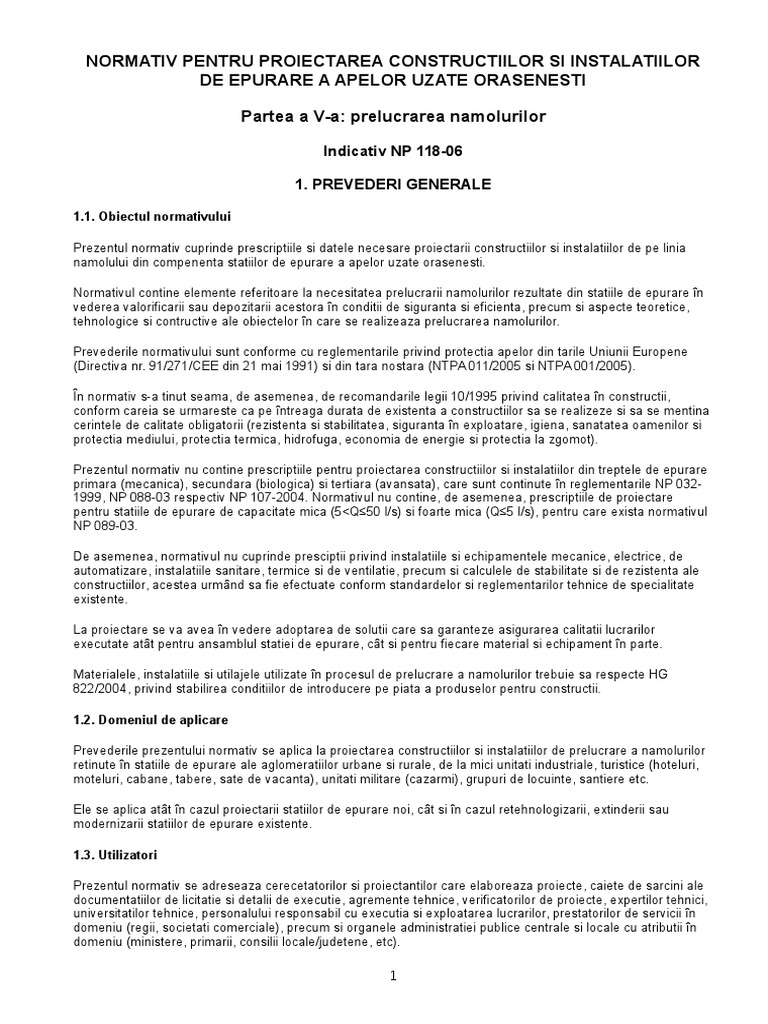 Np118 06 Normativ Privind Procesarea Namolurilor Din Statiile De Epurare
