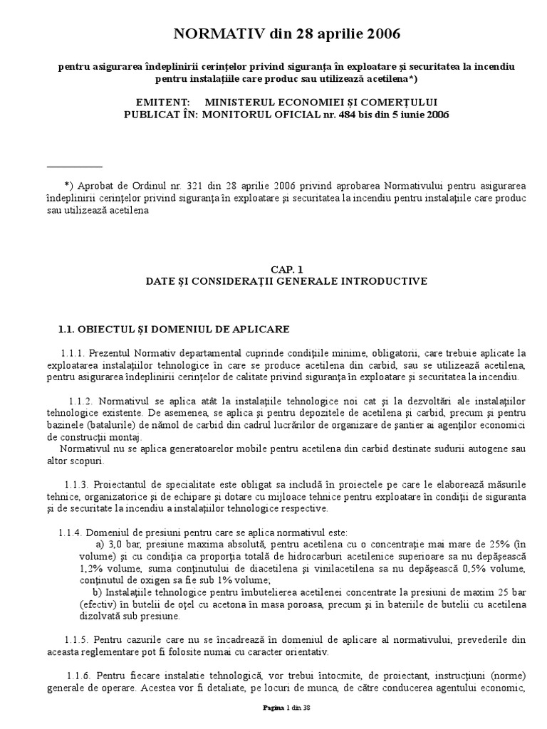 Normativ Exploatare Instalatii Ce Produc Si Utilizeaza Acetilena