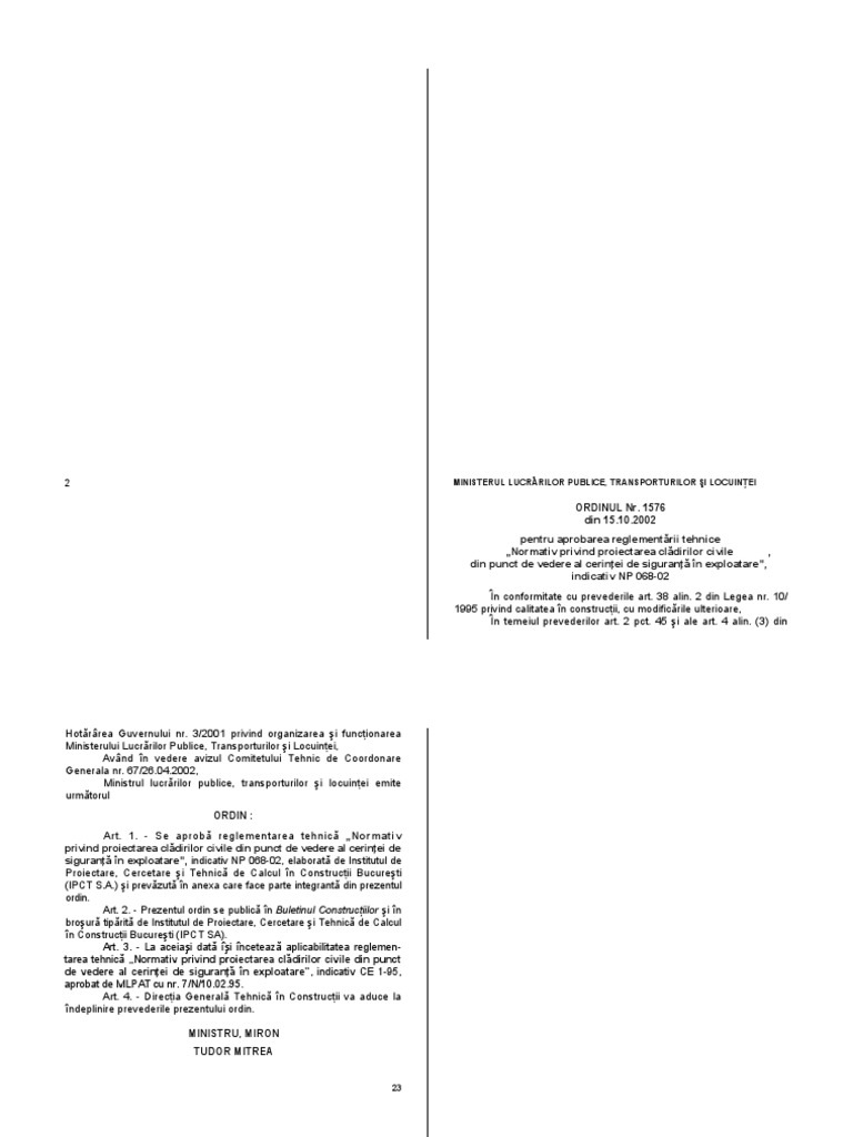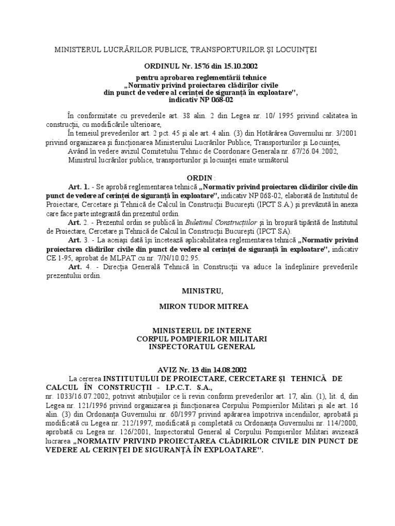 Normativ Privind Proiectarea Cladirilor Civile Din Punct De Vedere Al Cerintei De Siguranta In Exploatare Indicativ Np 068 2002