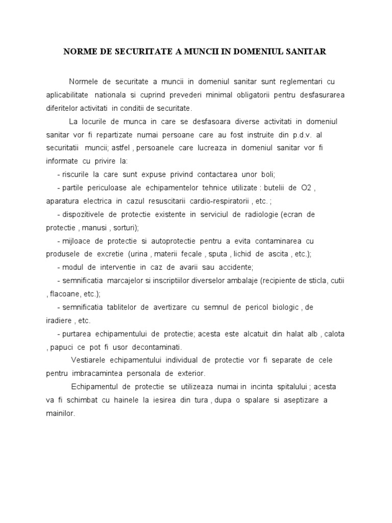 Norme De Securitate A Muncii In Domeniul Sanitar