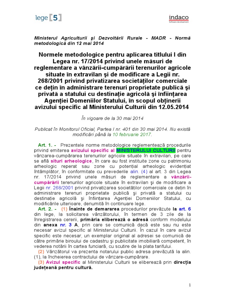 Legea Nr 17 2014 Privind Unele Măsuri De Reglementare A Vanzării Cumpărării Terenurilor Agricole Situate In Extravilan Editura Solomon