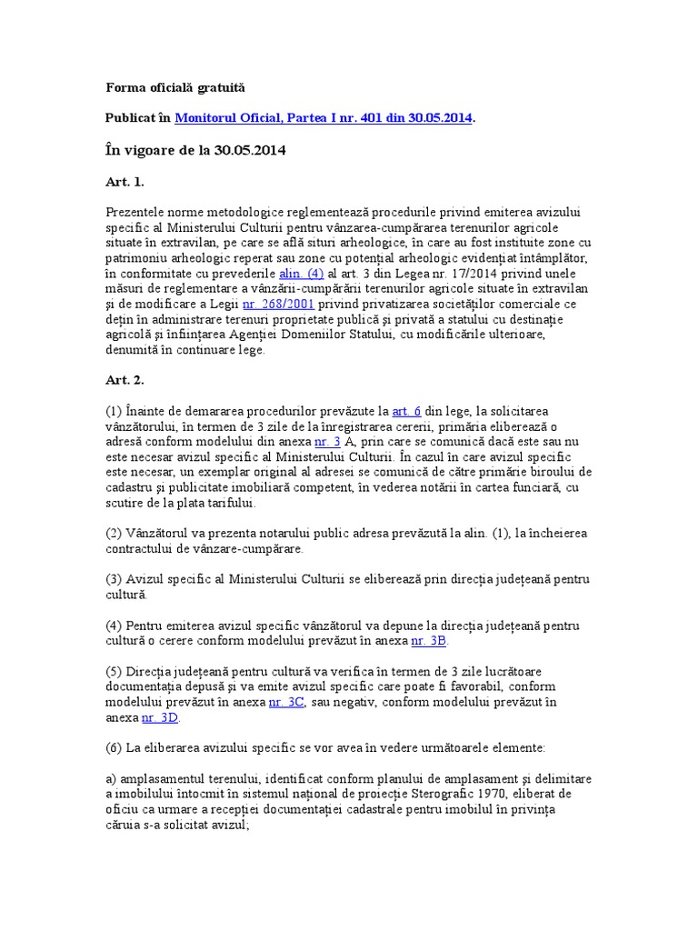 Avizul Ministerul Culturii Pentru Vinzare Teren Extravilan Conform Legea 17 2014