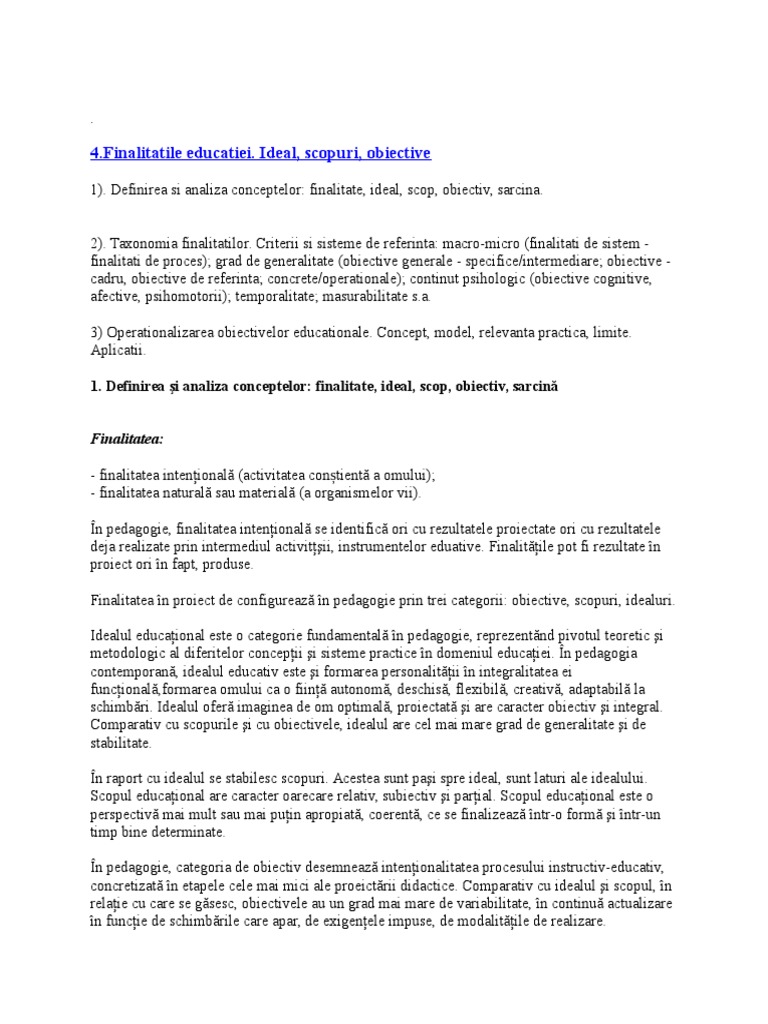 1 Finalitatile Educatiei Ideal Scopuri Obiective