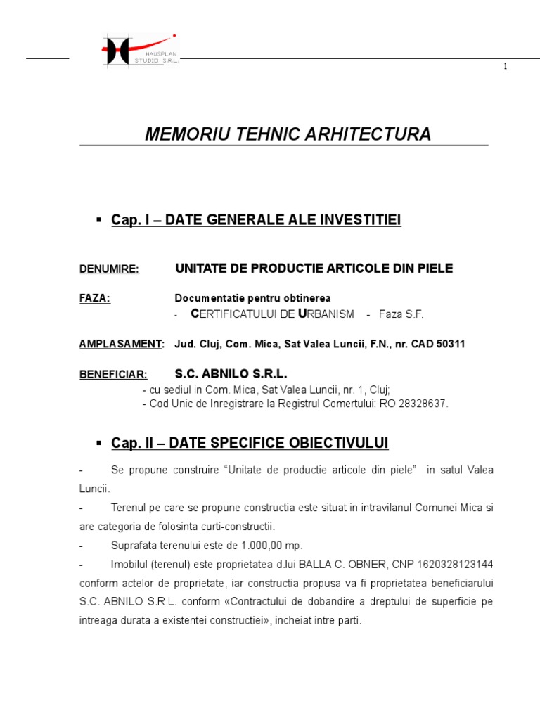 Memoriu Justificativ Pt Certificat De Urbanism Abnilo Pdf Document