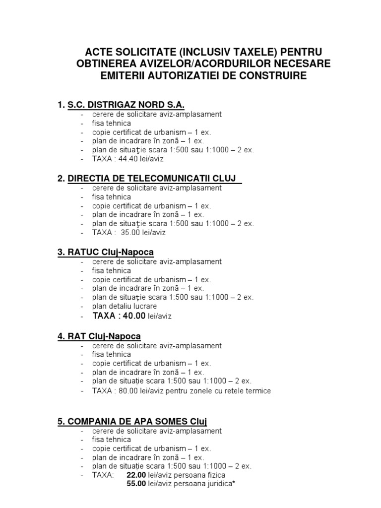 Acte Necesare Pentru Obtinerea Avizelor Sau Acordurilor Necesare Obtinerii Autorizatiei De Construire