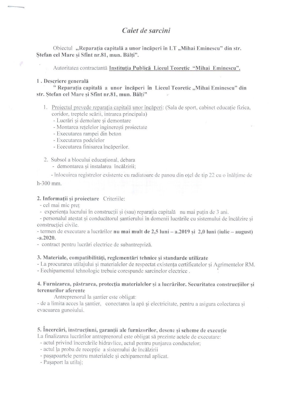 Instituția Publică Liceul Teoretic Mihai Eminescu Municipiul Bălți Transparență