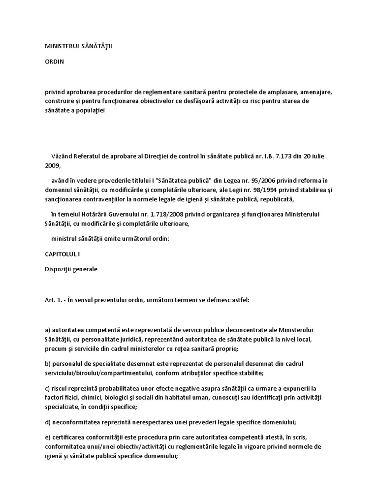 1030 din 20 august 2009 privind aprobarea procedurilor de reglementare sanitara pentru proiectele de amplasare amenajare construire si pentru functionarea obiectivelor ce desfasoara activitati cu risc pentru starea de sanatate a populatiei forma sintetică la data 05 mar 2013. 1030 2009 privind aprobarea procedurilor de reglementare sanitară pentru proiectele de amplasare amenajare construire şi pentru funcţionarea obiectivelor ce desfăşoară activităţi cu risc pentru starea de sănătate a populaţiei. Ordinul 1030 2009 ordin nr. Ministerul dezvoltării regionale şi locuinţei publicat în.