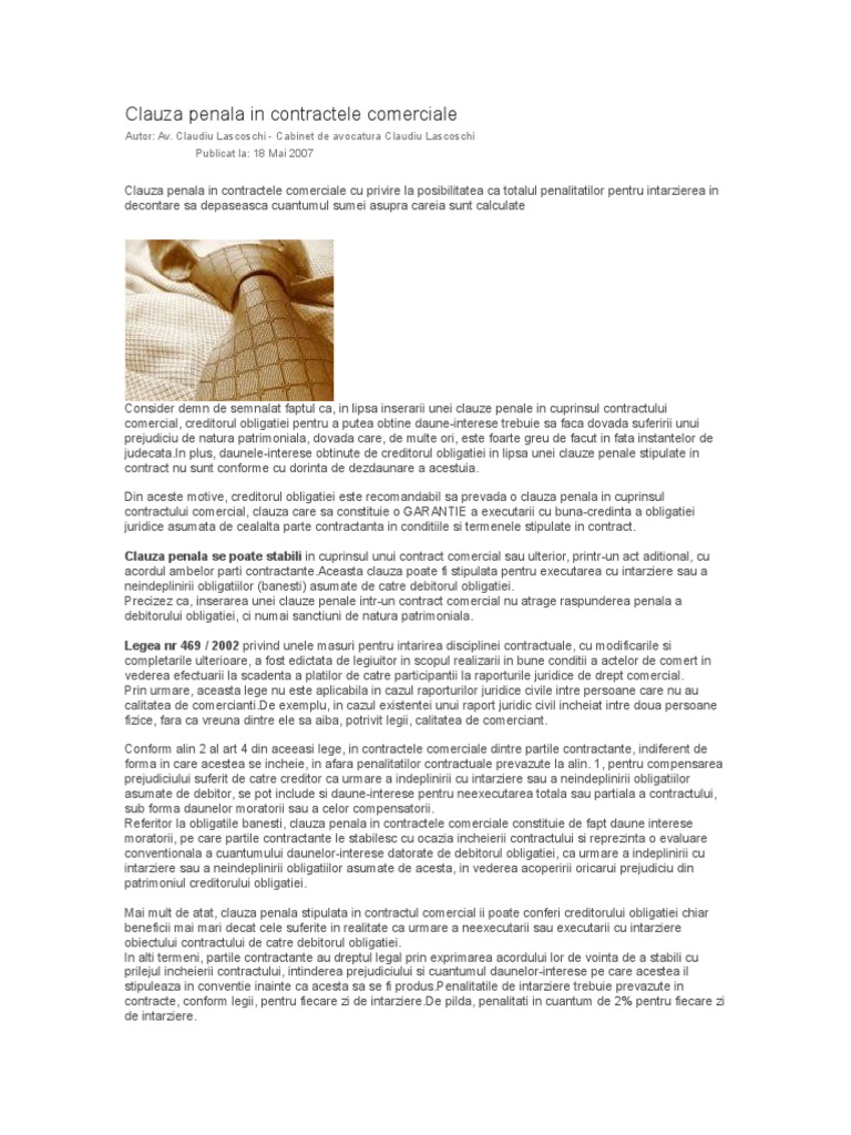 Clauza Clauza Penala In Contractele Comercialepenala In Contractele Comerciale