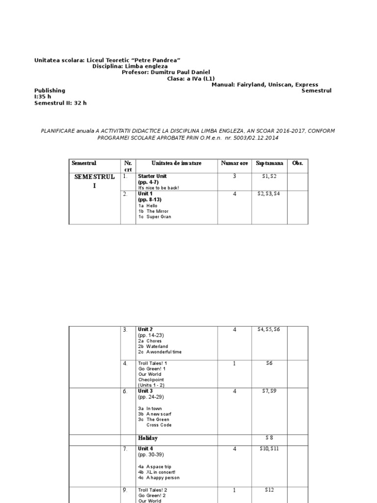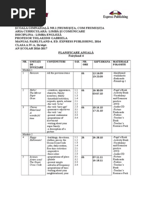 325627064 Planificare Fairyland 4 Cls A Iv A Doc Onomastics Linguistics