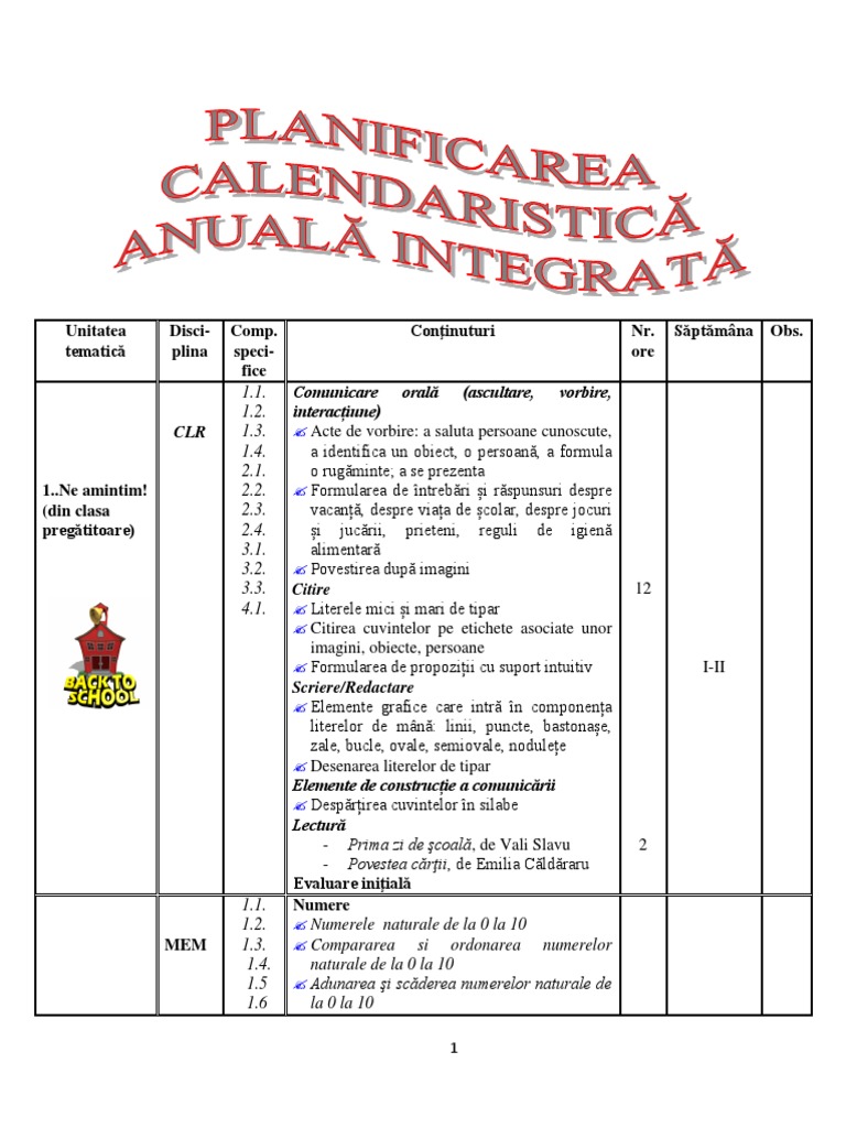 Planificare Calendaristică Integrată Completă Didactic Ro