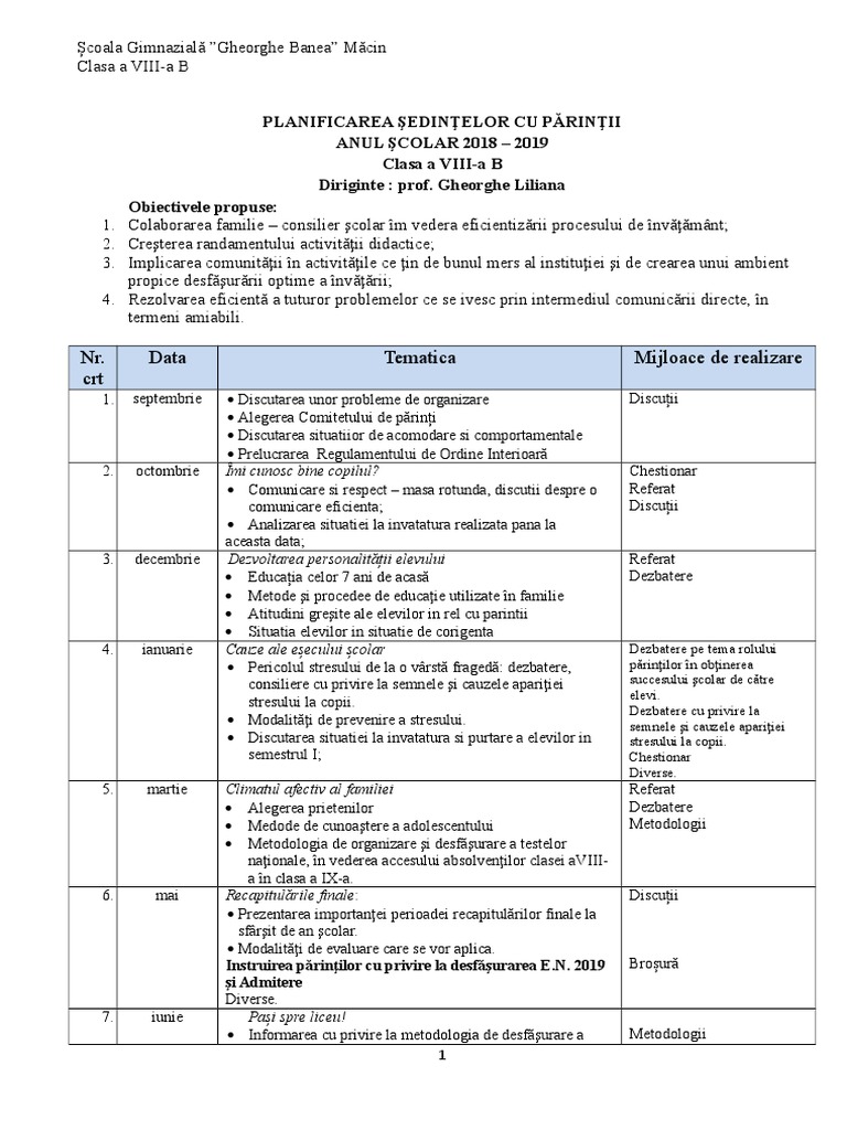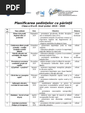 Planificarea Sedintelor Cu Parintii 2019 2020