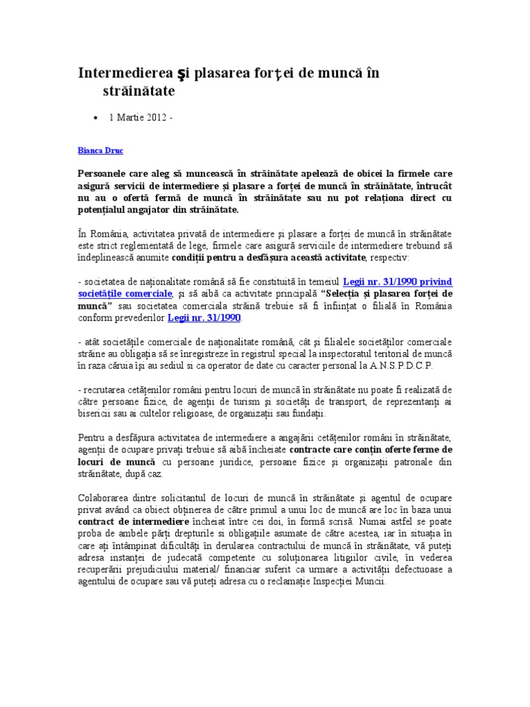 Intermedierea Si Plasare Forta De Munca Strainatate