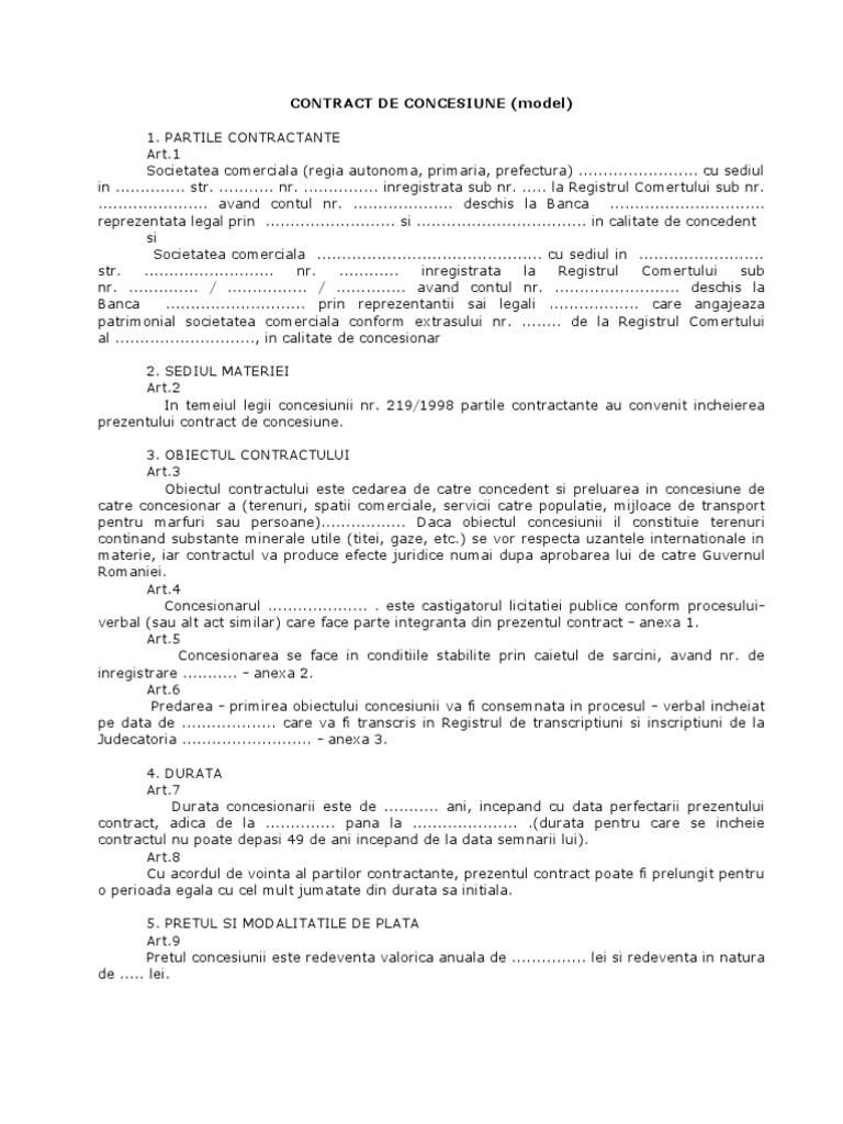 Concedent Concesionar 1 Contract De Concesiune Nr
