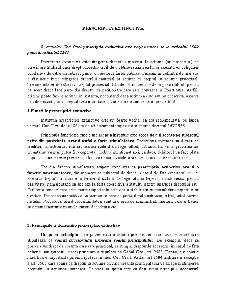 Prescriptia Extinctiva Vechiul Cod Civil Doc