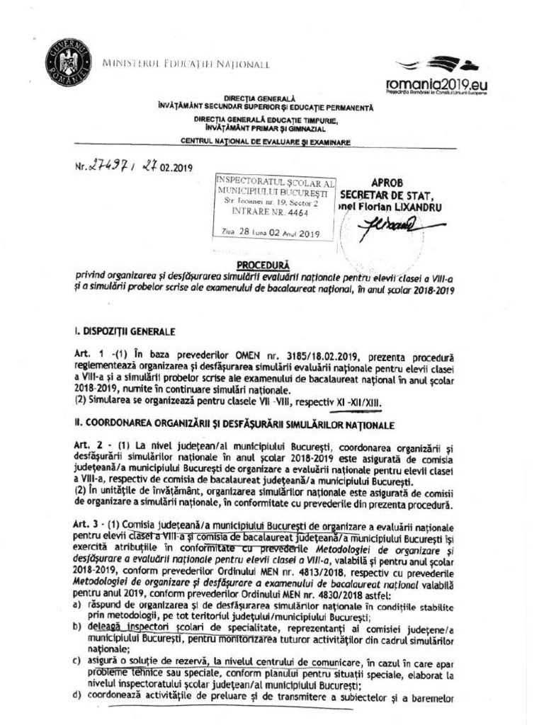 Procedura Pentru Evaluarea Nationala La Clasa A Viii A Si Bacalaureat Notele Nu Se Contesta Si Nu Se Fac Publice