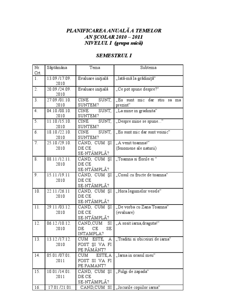 Planificare Anuala Grupa Mica