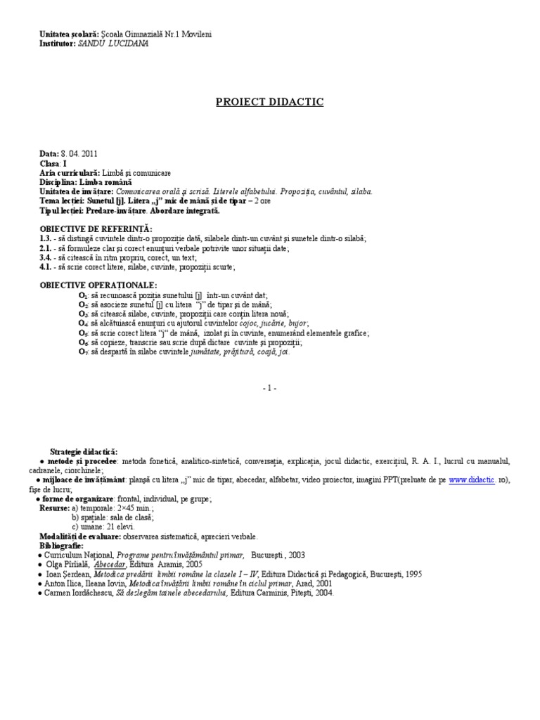 Proiect Didactic Lb Romana Integrat Sandu Lucidana