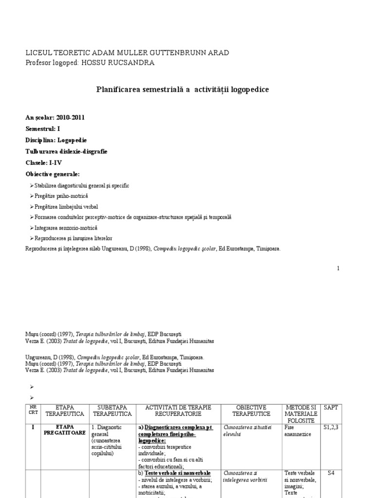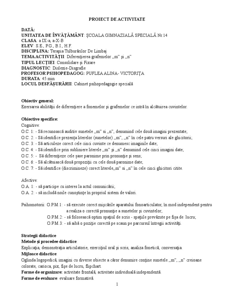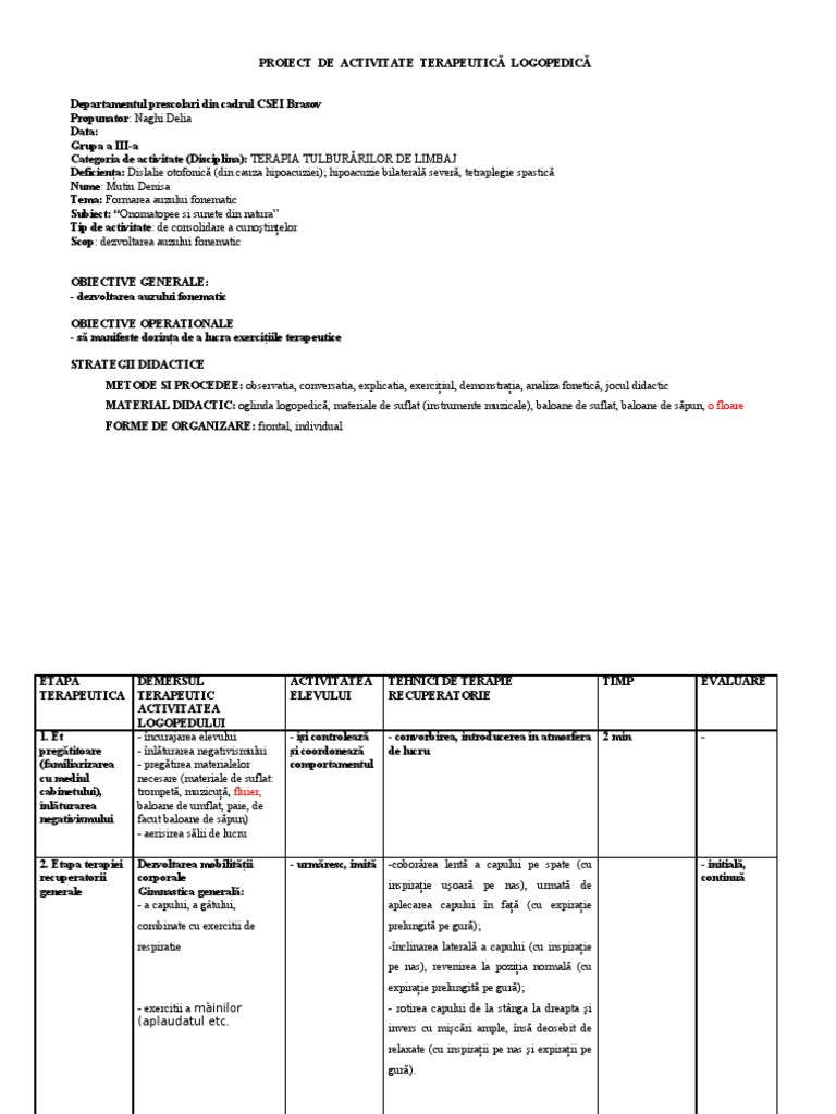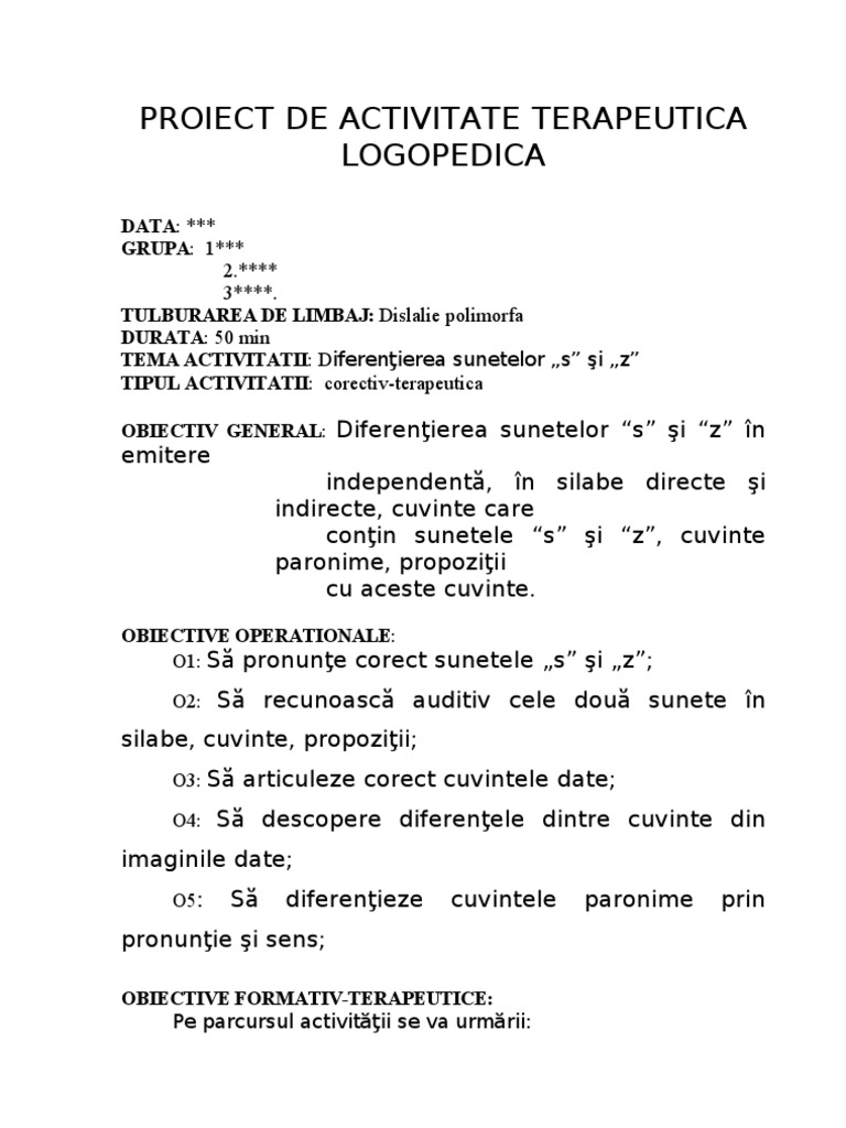 Doc Proiect De Activitate Logopedica Mari Moldovan Academia Edu