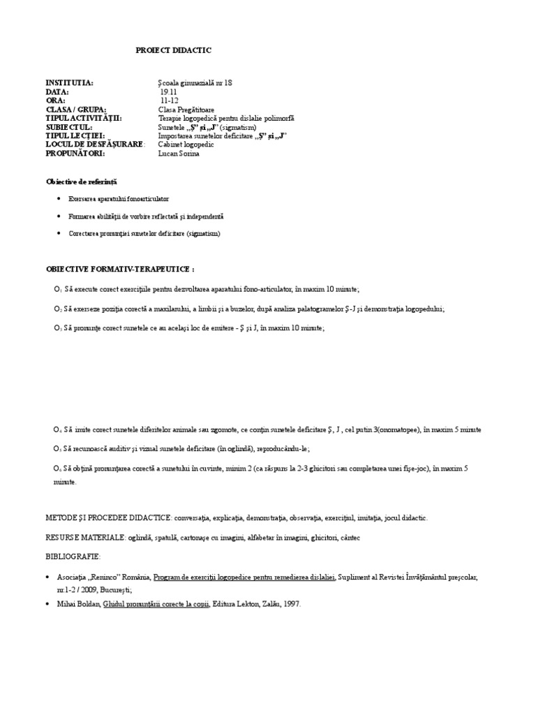 Proiect Didactic Logopedie Doc