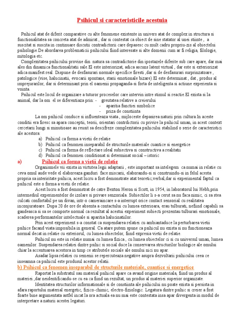 Referat Psihicul Si Caracteristicile Acestuia Psihopedagogie 3936