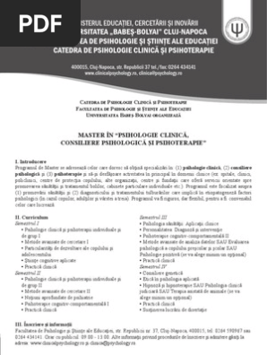 Programe De Studii De Master Psihologie Clinică Old Programe Prezentare Pccpp Pdf Discipline Pdf Document