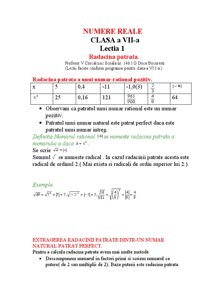 Clasa A Vii A Cap Numere Reale Radacina Patrata Radical Teorie Youtube