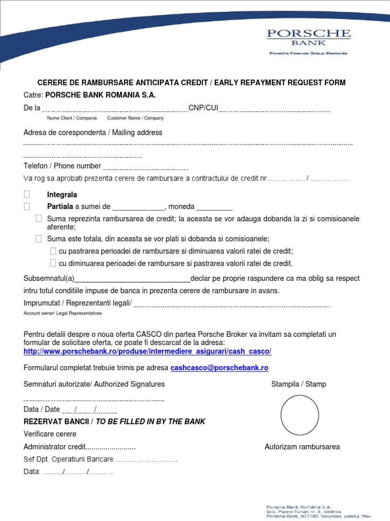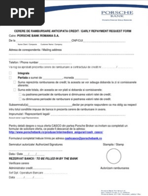 Formular Rambursare Anticipata Credit