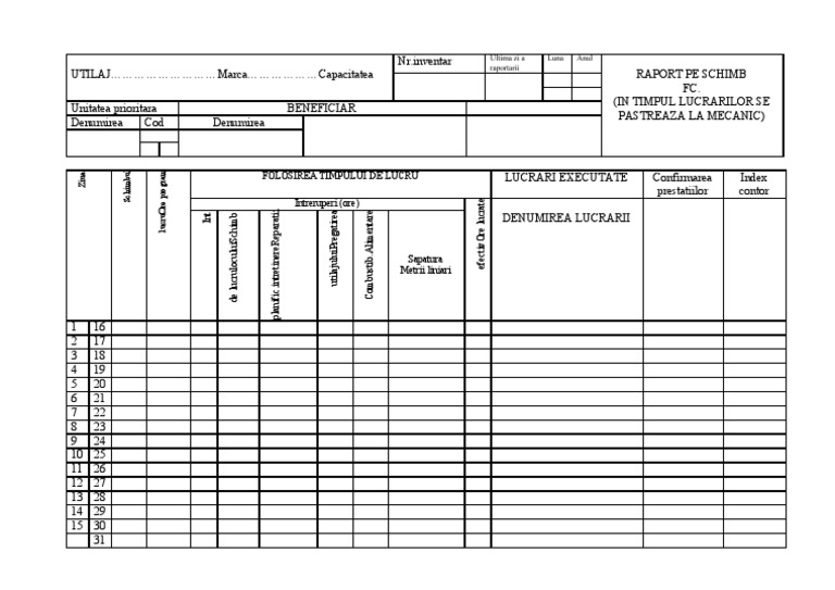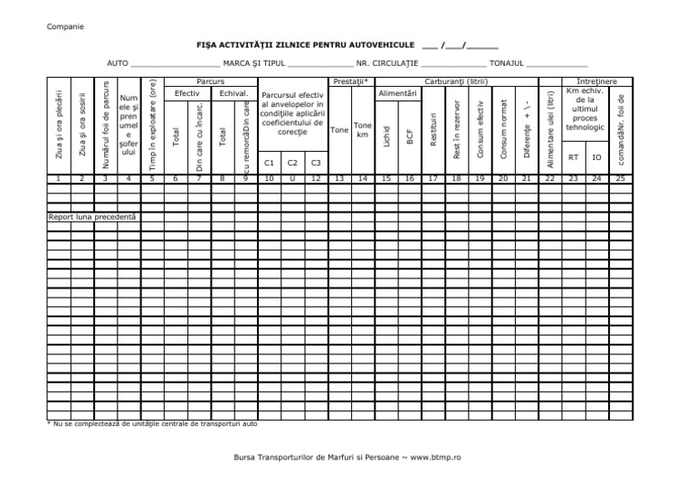 Software Parc Auto Raport Fisa De Activitati Zilnice In Cadrul Modulului Foi De Parcurs