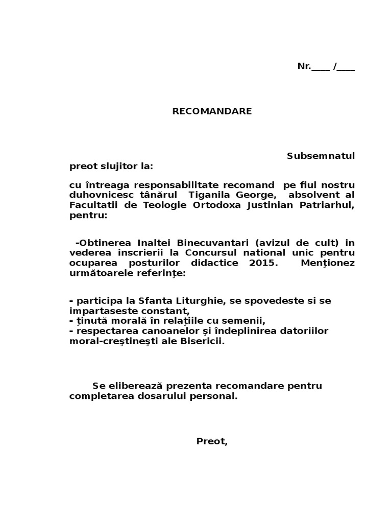 Recomandare Preot Duhovnic Pentru Admitere La Facultatea De Teologie Up