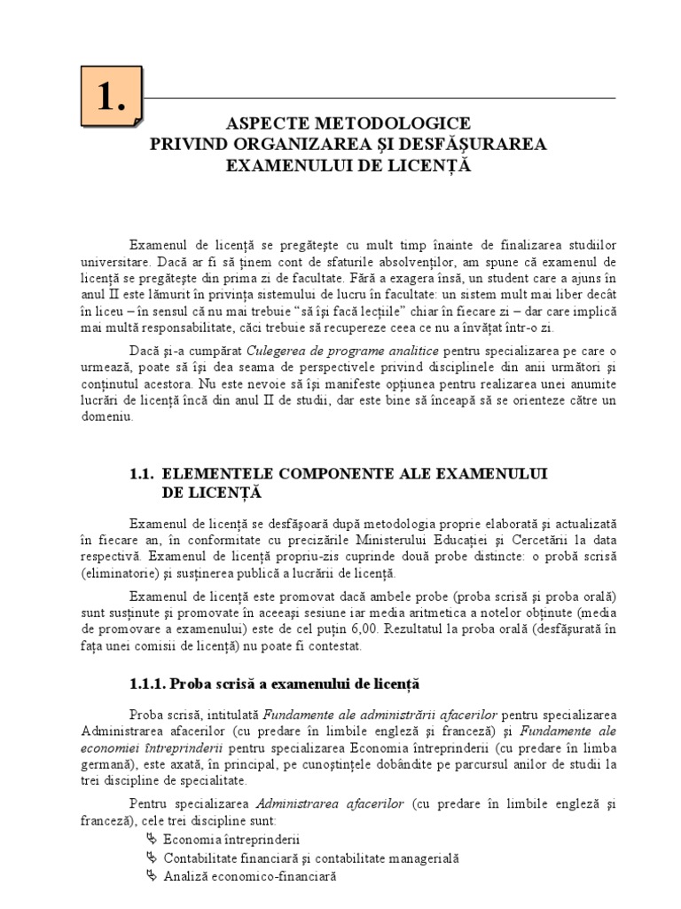 Indrumar Pentru Pregatirea Examenului De Licenta Specializarea Administrarea Afacerilor Cu Predare In Limba Engleza