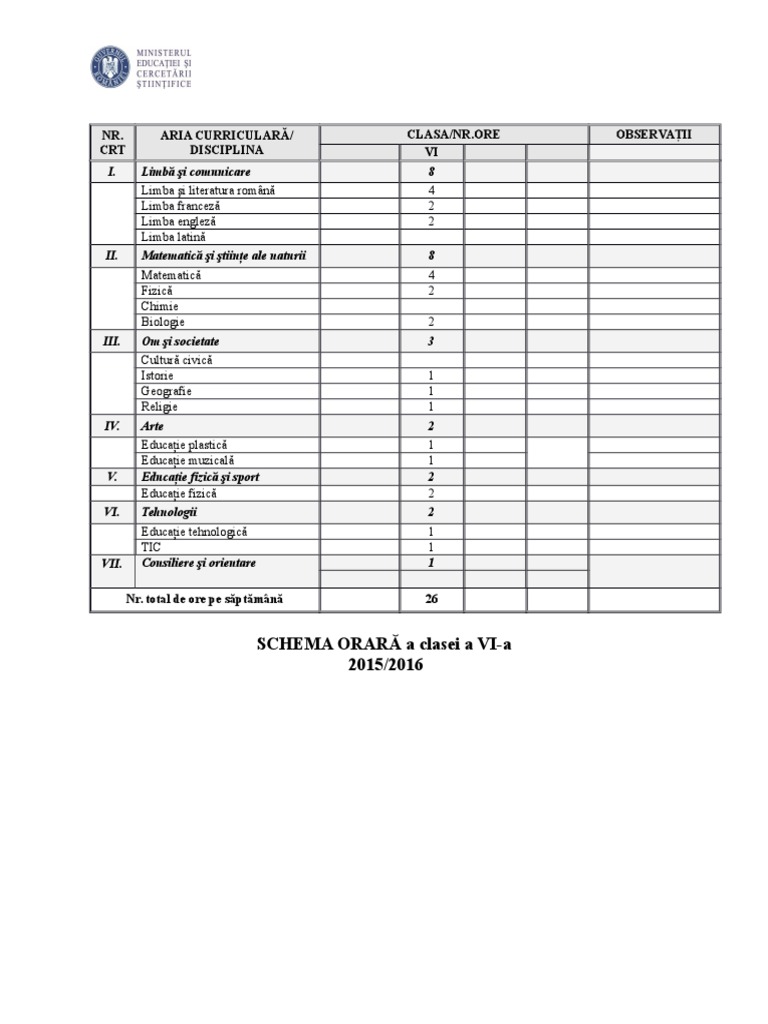 Schema Orară Cls A Vi A 2015 2016 Docx