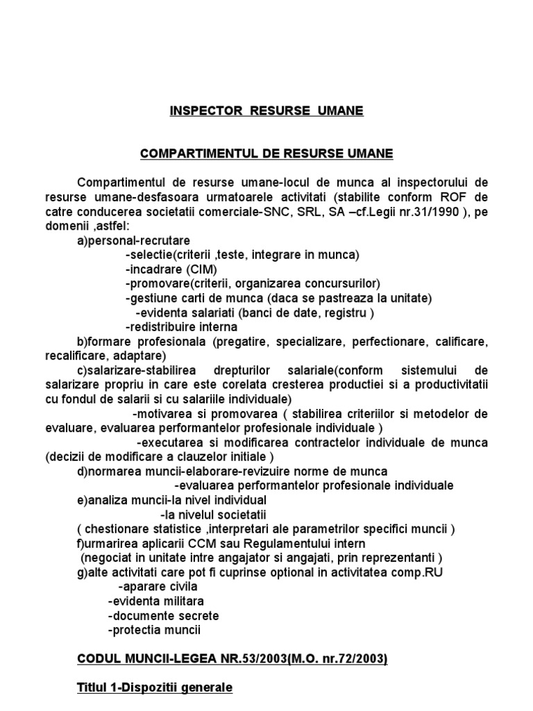 Inspector Resurse Umane