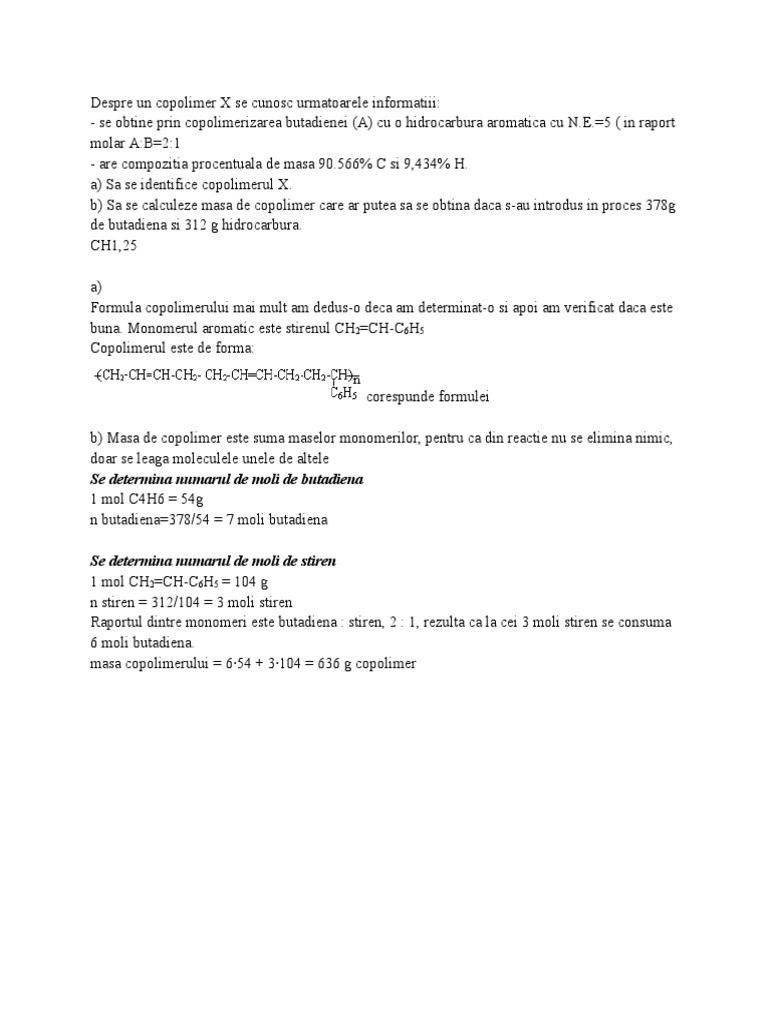 Despre Un Copolimer X Se Cunosc Urmatoarele Informatiii