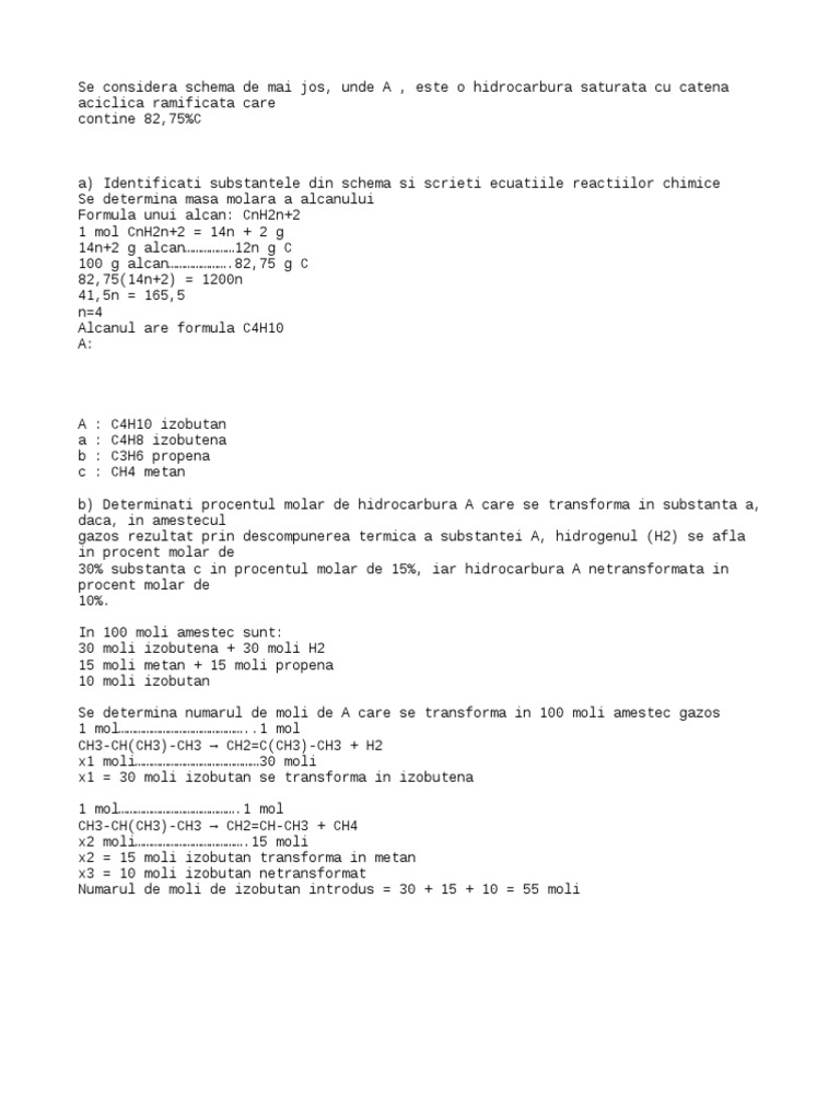 Se Considera Schema De Mai Jos Unde A Este O Hidrocarbura