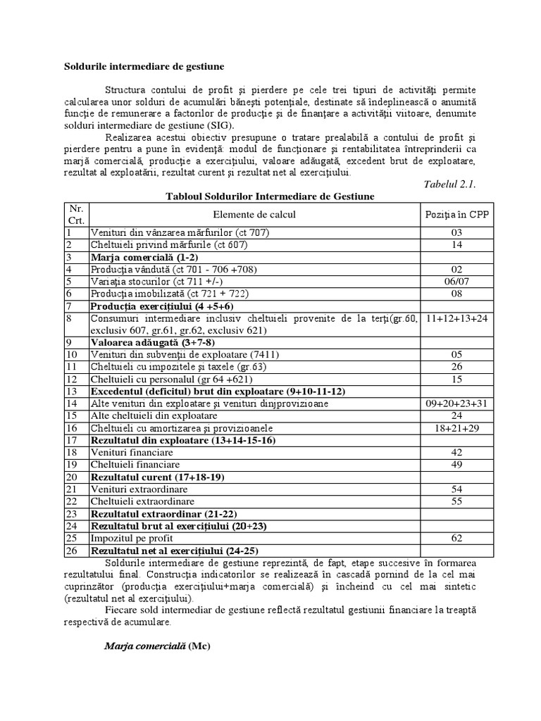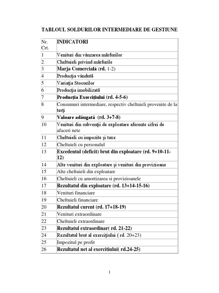 Tabloul Soldurilor Intermediare De Gestiune