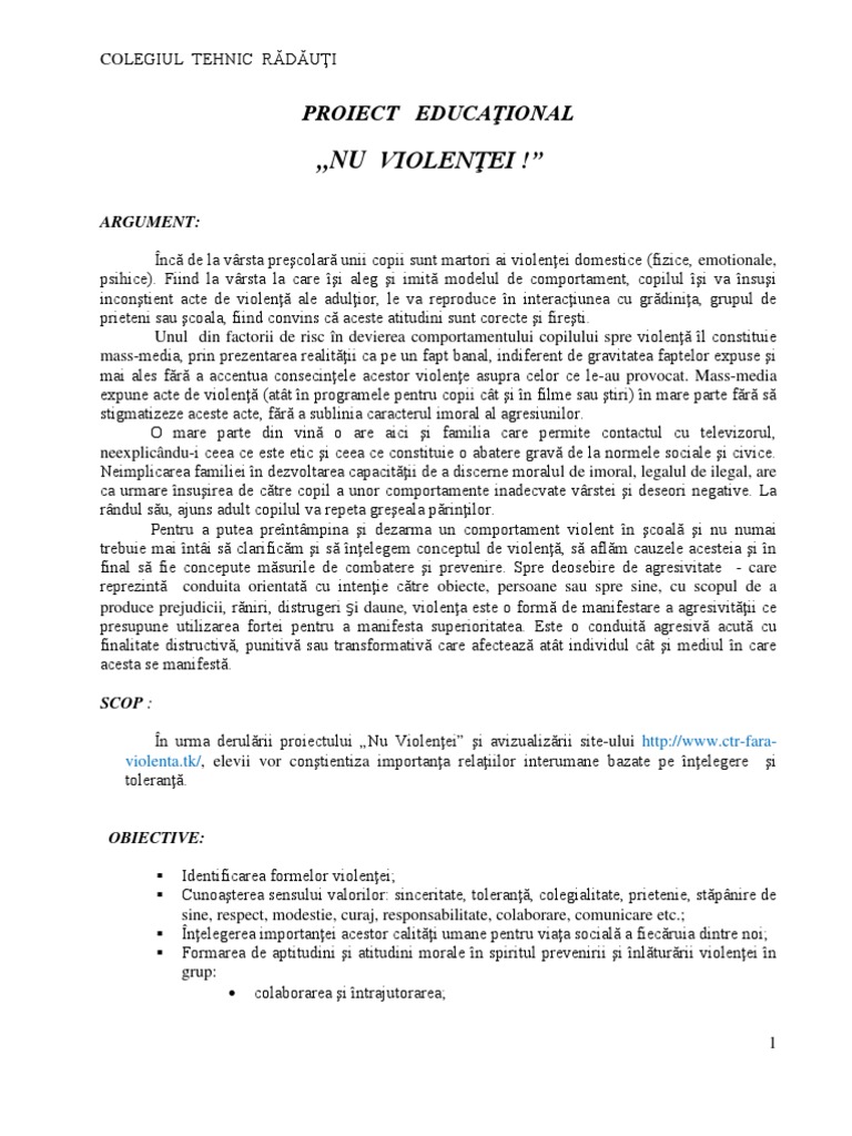 Proiect Educational Nu Violentei