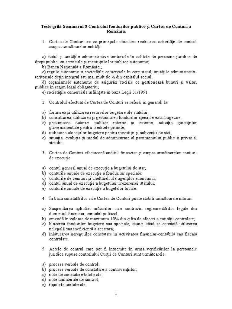 Teste Grila Curtea De Conturi