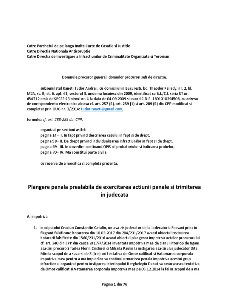 Dosar Penal Craciun Constantin Catalin Pentru Pentru Falsificarea Hotararii Din 204 231 2017